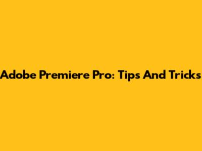 Adobe Premiere Pro: Tips And Tricks