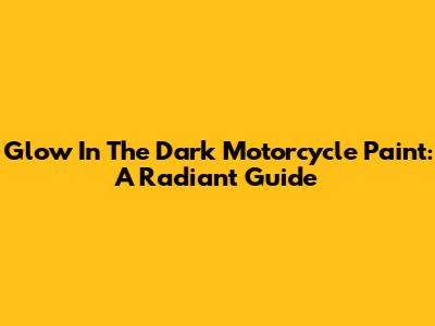 Glow In The Dark Motorcycle Paint: A Radiant Guide