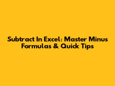 Subtract In Excel: Master Minus Formulas & Quick Tips