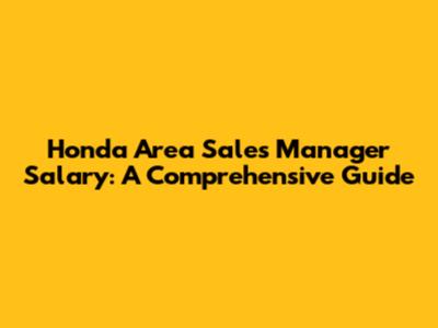 Honda Area Sales Manager Salary: A Comprehensive Guide