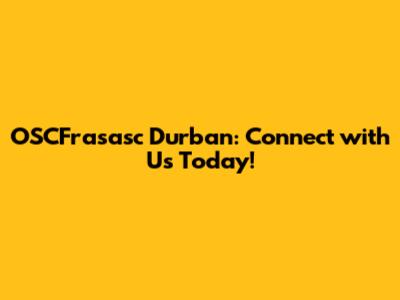 Why You Might Need to Connect with OSCFrasasc Durban