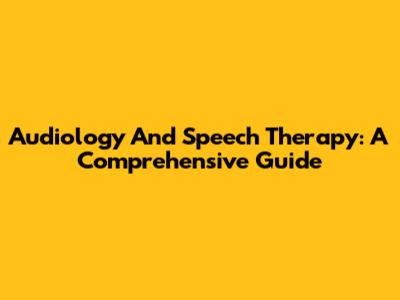 Audiology And Speech Therapy: A Comprehensive Guide