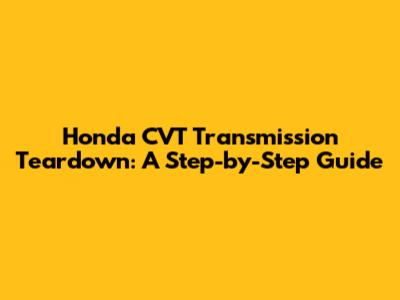 Honda CVT Transmission Teardown: A Step-by-Step Guide