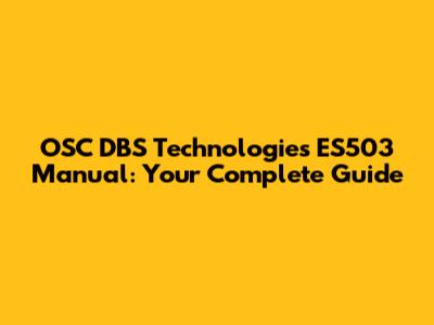 OSC DBS Technologies ES503 Manual: Your Complete Guide
