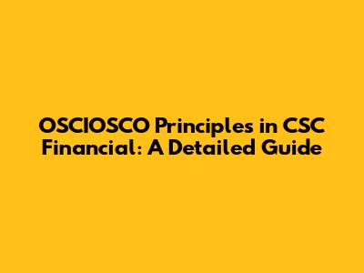 Why OSCIOSCO Principles Matter in CSC Financial