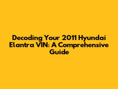 Decoding Your 2011 Hyundai Elantra VIN: A Comprehensive Guide