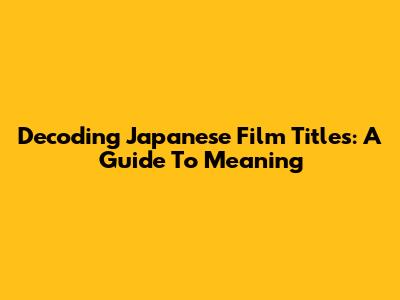 Decoding Japanese Film Titles: A Guide To Meaning