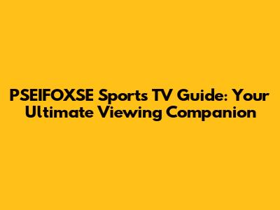 PSEIFOXSE Sports TV Guide: Your Ultimate Viewing Companion