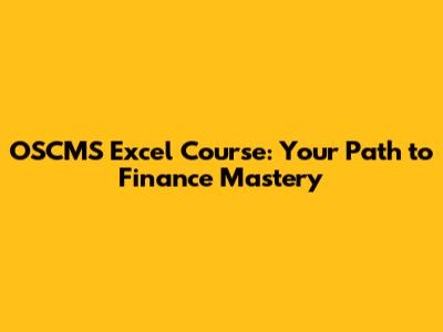 Hey finance enthusiasts! Ever felt like you're drowning in data, spreadsheets, and financial models? You're not alone! The world of finance relies heavily on the power of Microsoft Excel, and mastering it can be the key to unlocking amazing career opportunities and boosting your financial savvy. That's where the OSCMS Excel course for finance comes in. In this article, we'll dive deep into what this course offers, why it's a game-changer, and how it can propel your finance career to new heights. We'll break down the curriculum, the benefits, and the skills you'll gain. So, buckle up, guys, because you're about to discover a fantastic resource for taking your finance skills to the next level.