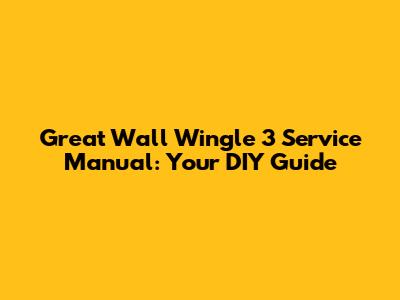 Great Wall Wingle 3 Service Manual: Your DIY Guide