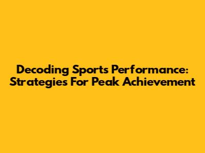 Decoding Sports Performance: Strategies For Peak Achievement