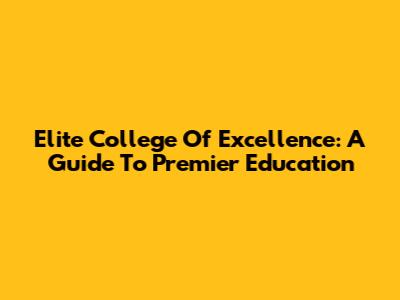 Elite College Of Excellence: A Guide To Premier Education