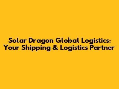 Solar Dragon Global Logistics: Your Shipping & Logistics Partner