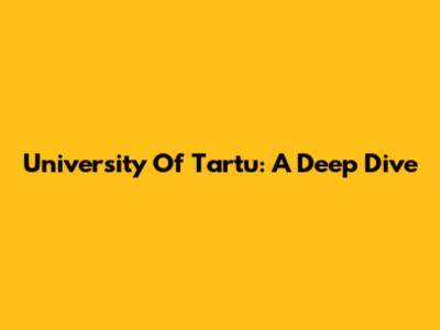 University Of Tartu: A Deep Dive