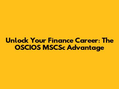 Unlock Your Finance Career: The OSCIOS MSCSc Advantage