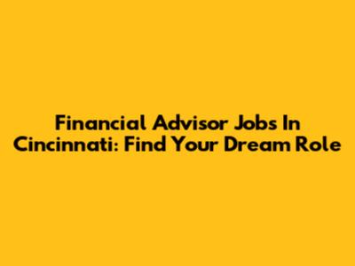 Financial Advisor Jobs In Cincinnati: Find Your Dream Role