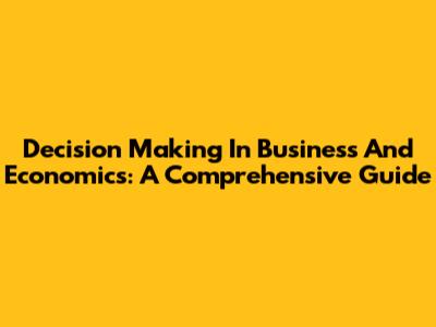 Decision Making In Business And Economics: A Comprehensive Guide