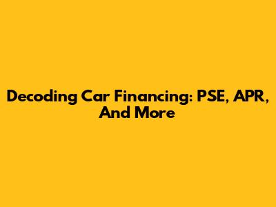 Decoding Car Financing: PSE, APR, And More