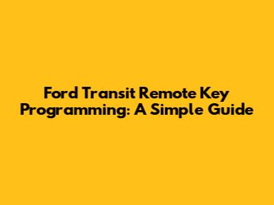 Ford Transit Remote Key Programming: A Simple Guide