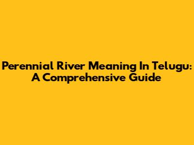 Perennial River Meaning In Telugu: A Comprehensive Guide