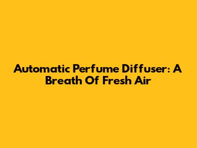 Automatic Perfume Diffuser: A Breath Of Fresh Air