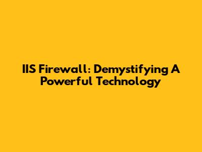 IIS Firewall: Demystifying A Powerful Technology