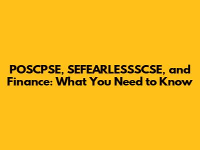 Hey guys! Let's dive into the world of POSCPSE, SEFEARLESSSCSE, and finance. You might be scratching your head, wondering what these terms even mean. Don't worry, we'll break it down in a way that's easy to understand. Whether you're a student, an investor, or just curious about these topics, this guide is for you. We'll explore each concept, their significance, and how they intertwine. So, buckle up and get ready to learn!