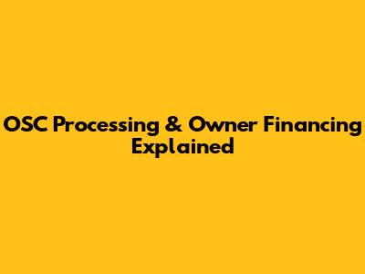 OSC Processing & Owner Financing Explained