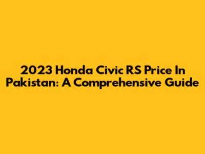 2023 Honda Civic RS Price In Pakistan: A Comprehensive Guide