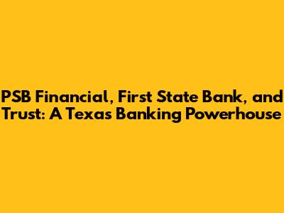 Let's dive into the world of PSB Financial, First State Bank, and Trust, a cornerstone of the Texas banking sector. We’ll explore what makes it tick, its history, and why it's a significant player in the Lone Star State's financial landscape. So, buckle up, guys, as we unpack everything you need to know about this banking institution!