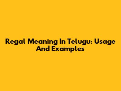 Regal Meaning In Telugu: Usage And Examples
