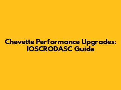 Chevette Performance Upgrades: IOSCRODASC Guide