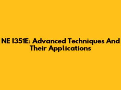 NE I351E: Advanced Techniques And Their Applications
