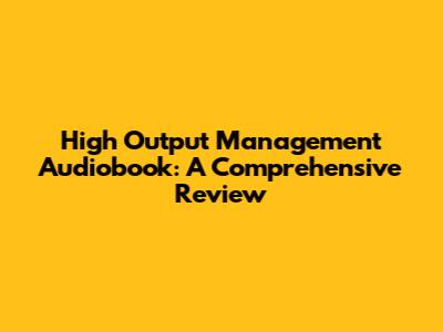 High Output Management Audiobook: A Comprehensive Review