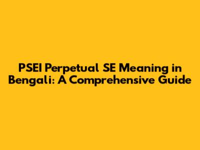 Hey guys! Ever stumbled upon "PSEI Perpetual SE" and wondered what the heck it means, especially in Bengali? Well, you're in the right place! We're diving deep into the meaning of PSEI Perpetual SE in Bengali, breaking down its components, and exploring its significance. This guide is designed to be super clear and easy to understand, even if you're not a finance whiz. So, grab your favorite beverage, sit back, and let's get started. We'll explore everything from the basic definition to its practical implications. This is going to be a fun and informative ride, so buckle up!
