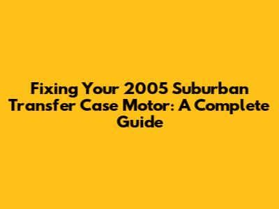 Fixing Your 2005 Suburban Transfer Case Motor: A Complete Guide