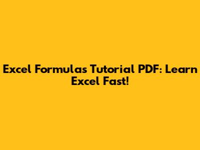 Excel Formulas Tutorial PDF: Learn Excel Fast!