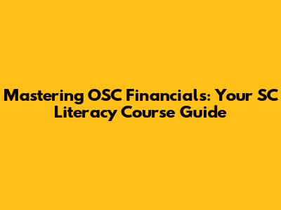 Mastering OSC Financials: Your SC Literacy Course Guide