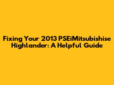 Fixing Your 2013 PSEiMitsubishise Highlander: A Helpful Guide