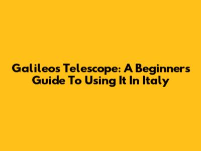 Galileo's Telescope: A Beginner's Guide To Using It In Italy