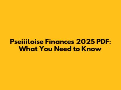 Navigating the Pseiiiloise Finances 2025 PDF