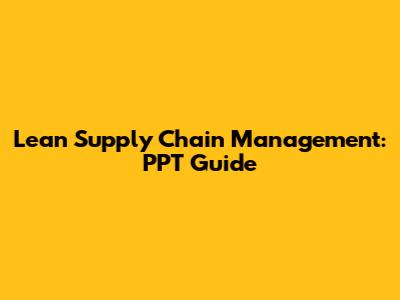 Lean Supply Chain Management: PPT Guide