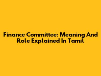 Finance Committee: Meaning And Role Explained In Tamil
