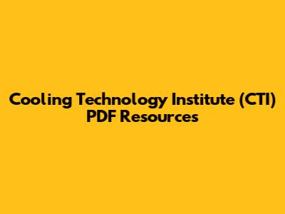 Cooling Technology Institute (CTI) PDF Resources