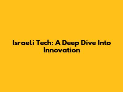 Israeli Tech: A Deep Dive Into Innovation