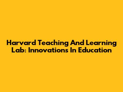 Harvard Teaching And Learning Lab: Innovations In Education