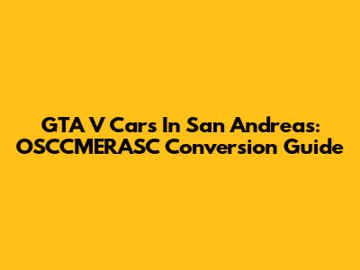 GTA V Cars In San Andreas: OSCCMERASC Conversion Guide