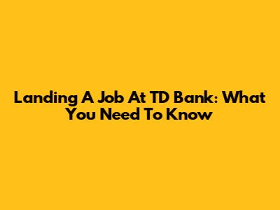 Landing A Job At TD Bank: What You Need To Know