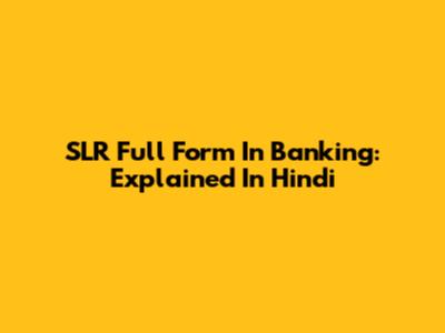 SLR Full Form In Banking: Explained In Hindi