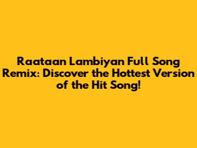 Hey guys! Are you ready to groove to a sensational remix of the chart-topping hit, Raataan Lambiyan? You've come to the right place! This article is your ultimate guide to exploring the most electrifying remixes of this already iconic song. We’ll dive deep into what makes these remixes so special, where you can find them, and why they’re taking the music scene by storm. Get ready to have your playlists revamped with some serious beats!
